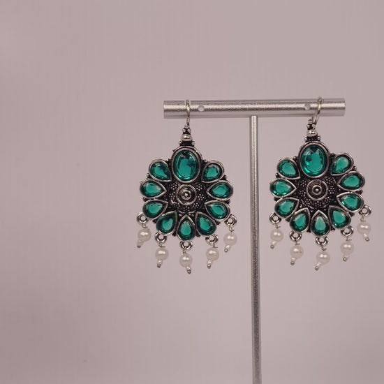 Hand-crafted oxidized silver earrings with cobalt blue accents — bold, boho, and beautifully Indian.