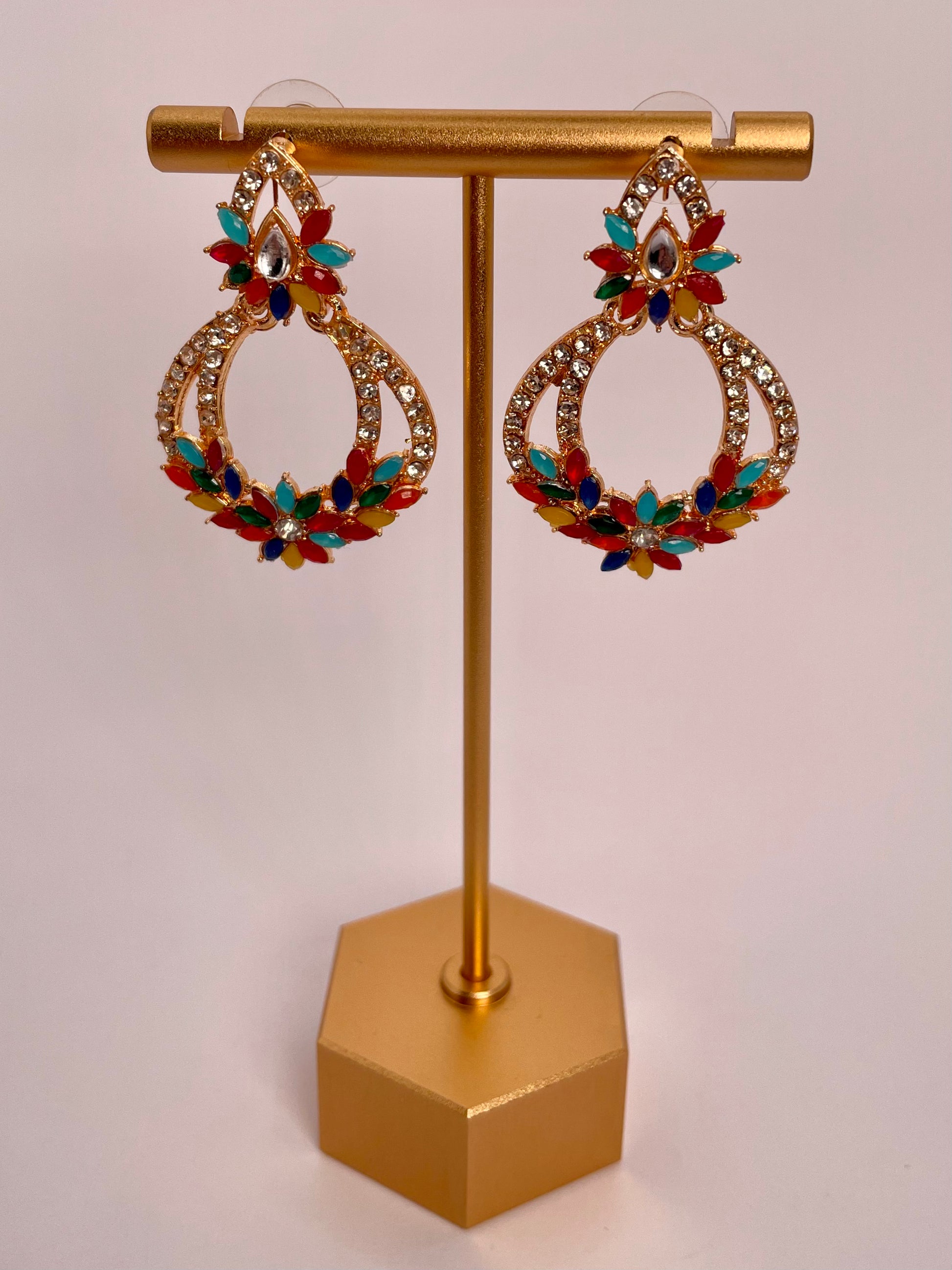 Vibrant and eye-catching, the Colourful Stone Oval Earring features a graceful oval design adorned with multicolored stones. A festive statement piece that adds brightness, charm, and elegance to special occasions.