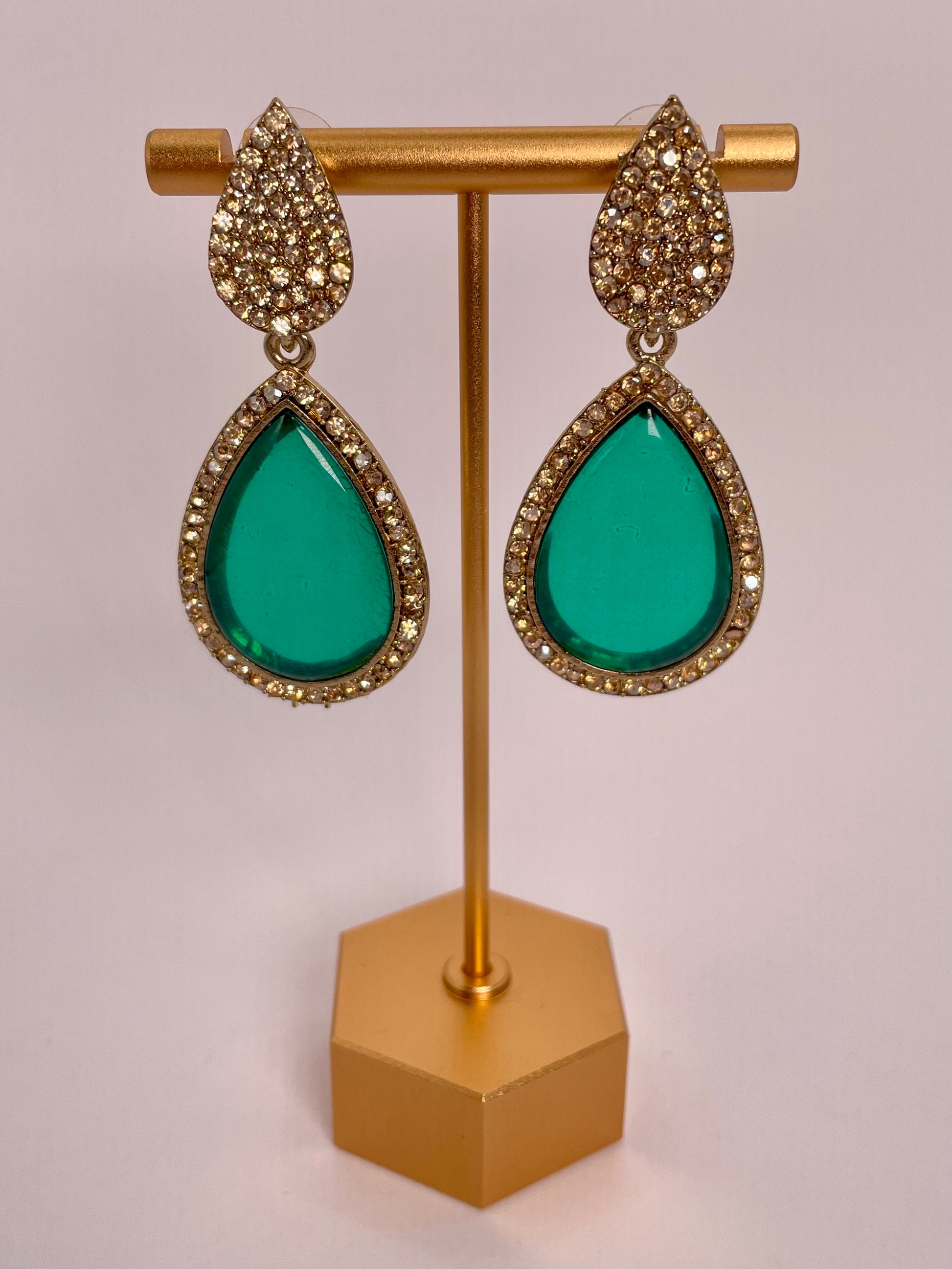 Elegant and striking, the Green Transparent Pear Stone Earring features a pear-shaped design with a radiant green transparent stone. A graceful piece that adds freshness and sophistication to festive and special occasions.