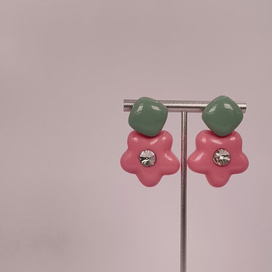 Mint-green earrings with soft pink floral accents — delicate, dreamy, and effortlessly chic.