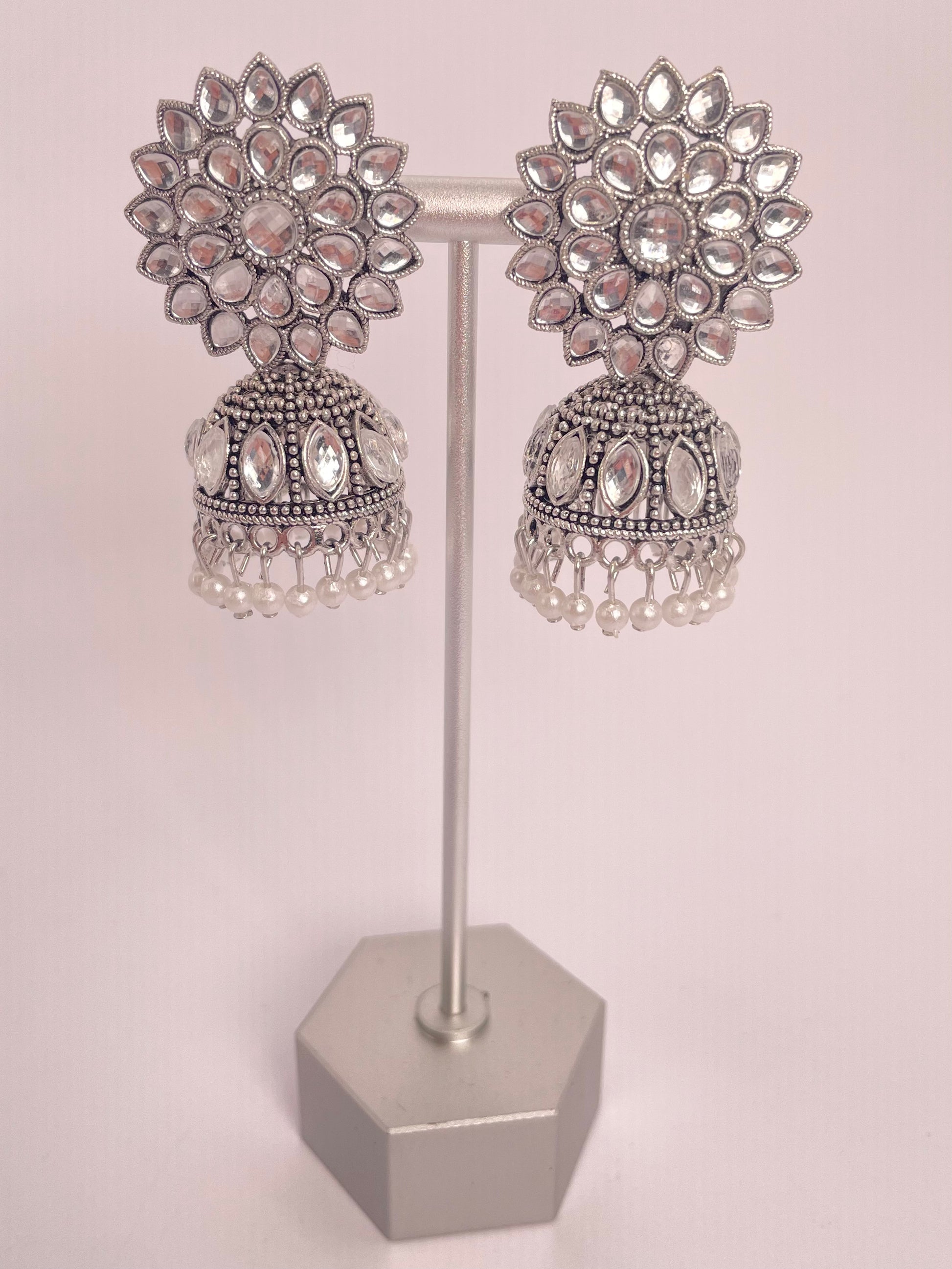 Regal and timeless, the Kundan Stone Round Jimka Earring features intricate kundan stonework set in a classic round jimka silhouette. A festive piece that blends traditional craftsmanship with elegant charm, perfect for cultural and special occasions.