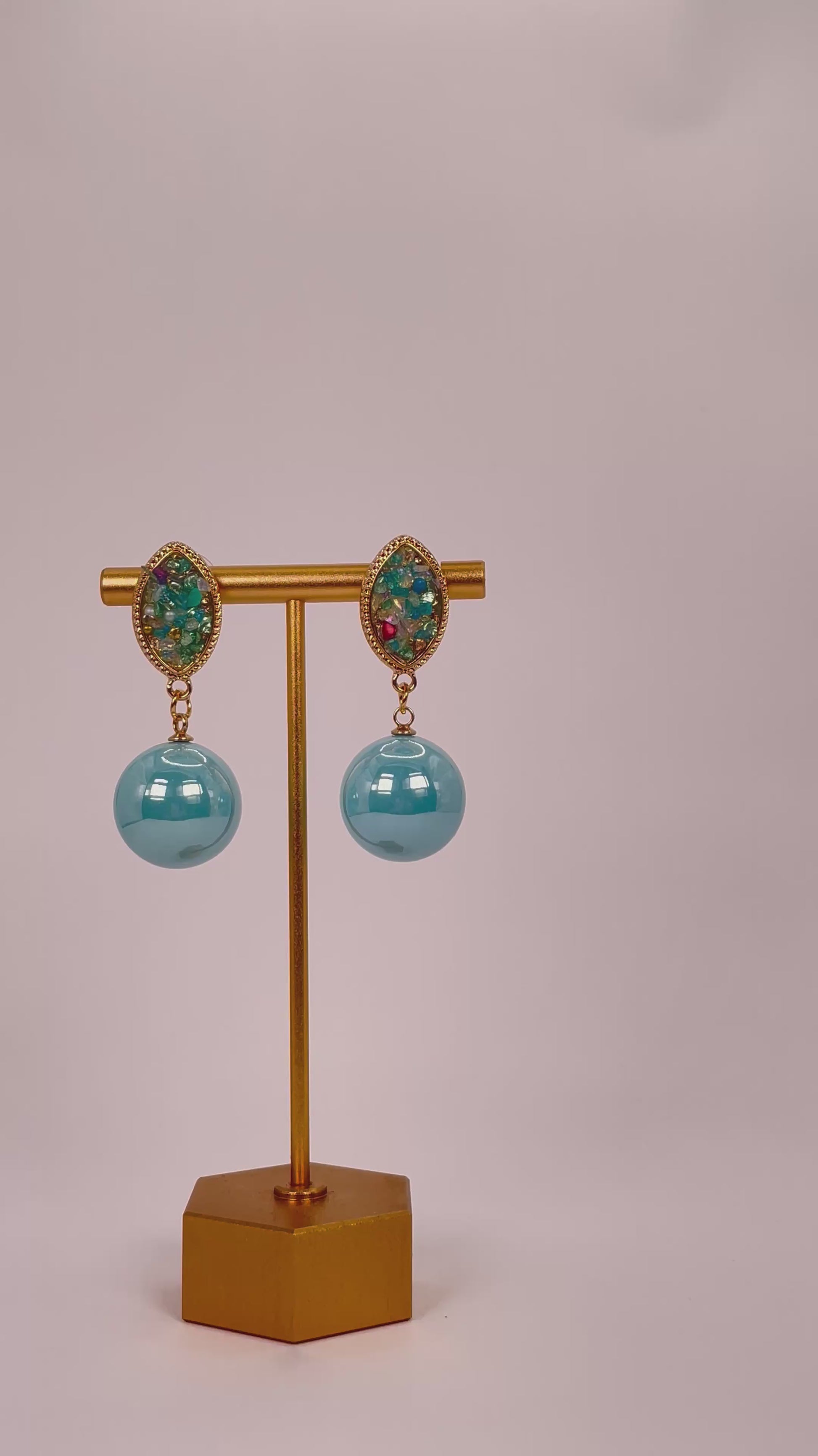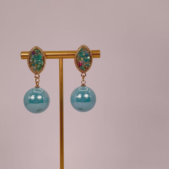 Multicolour stone earrings with blue pearls — lively sparkle blended with refined elegance.