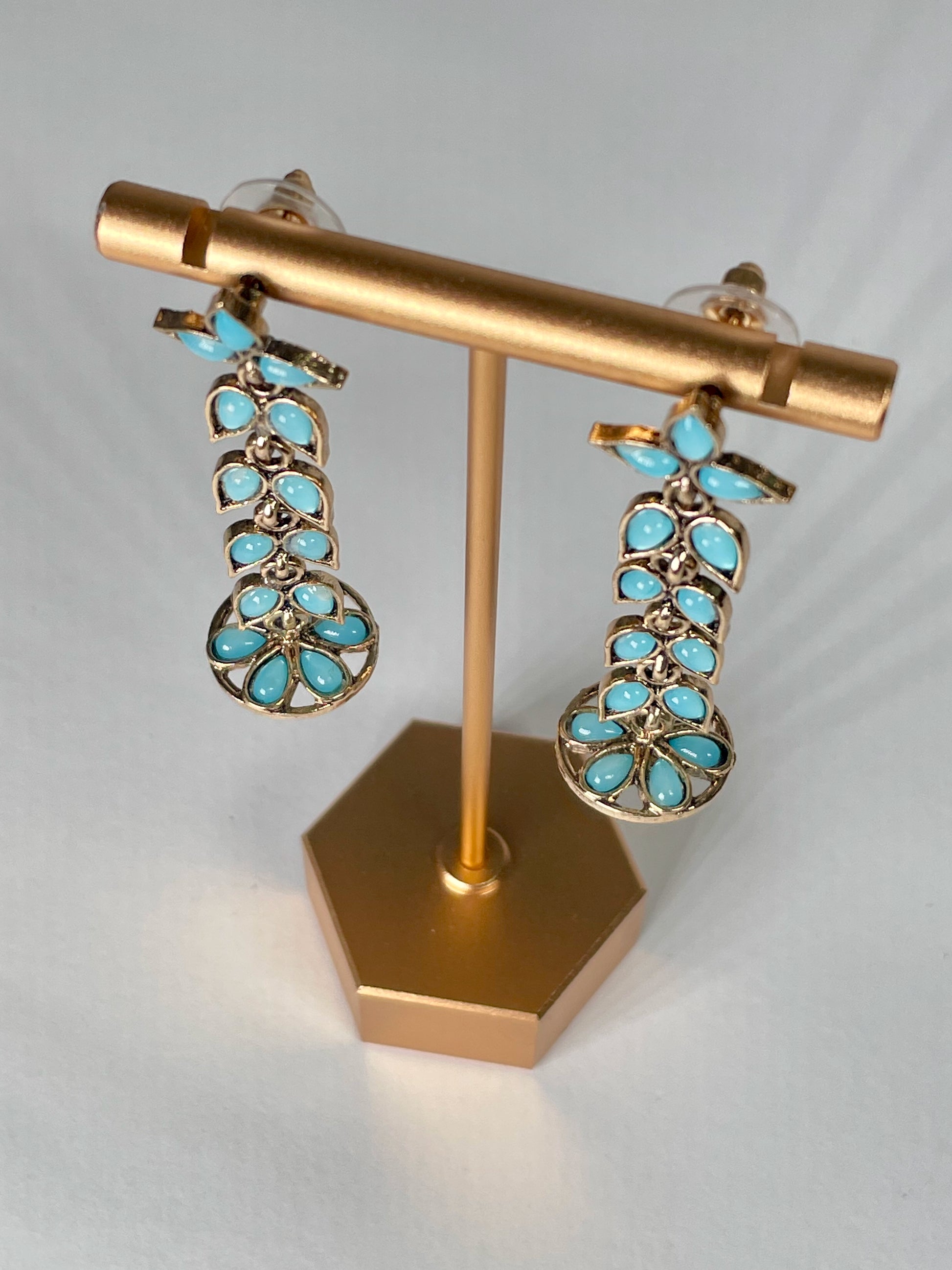 Sapphira is a Blue-Stone-Hanging-Flower-Earring that embodies calm elegance and timeless beauty. The deep blue stones bloom into delicate floral forms, swaying gently with every movement like petals in a breeze. Whether you're dressing up for a serene evening or adding a graceful accent to your day, Sapphira brings a sense of poise and a sparkle of tranquility to every moment.