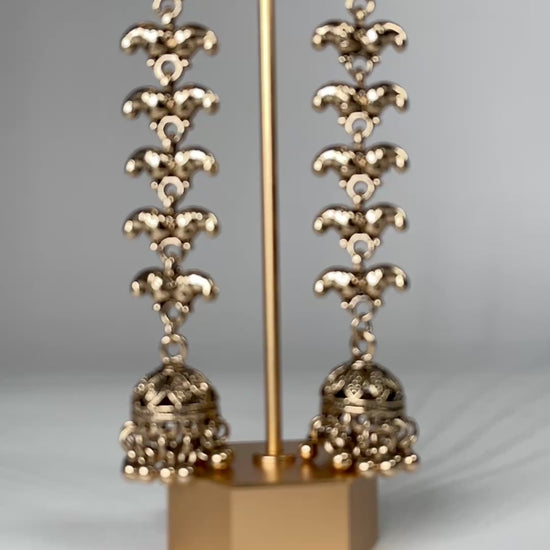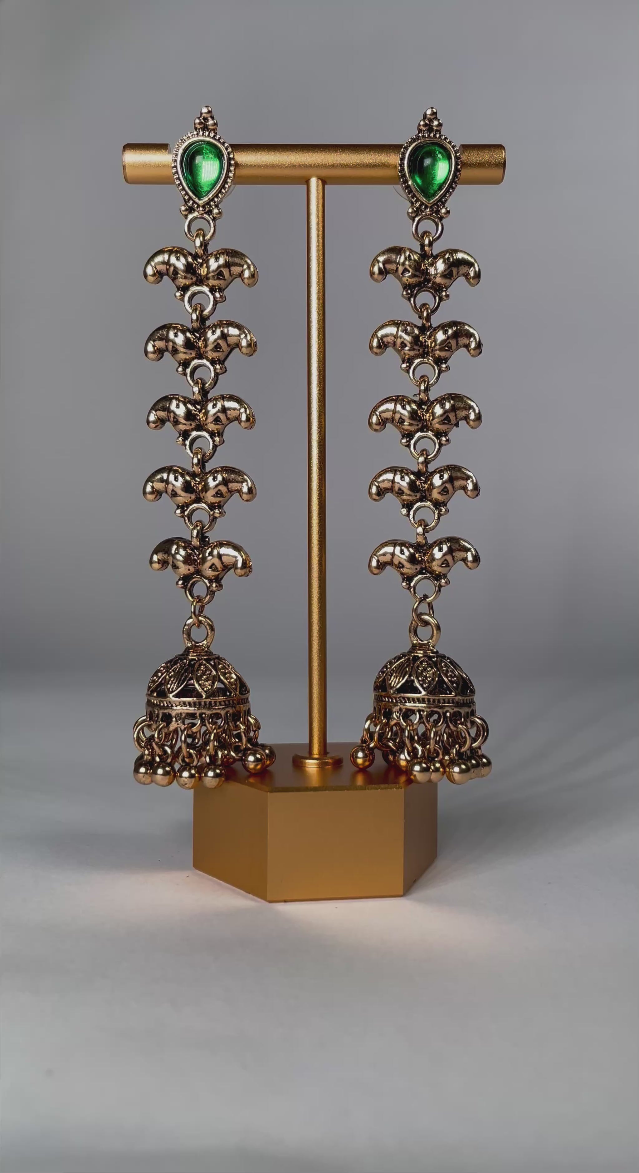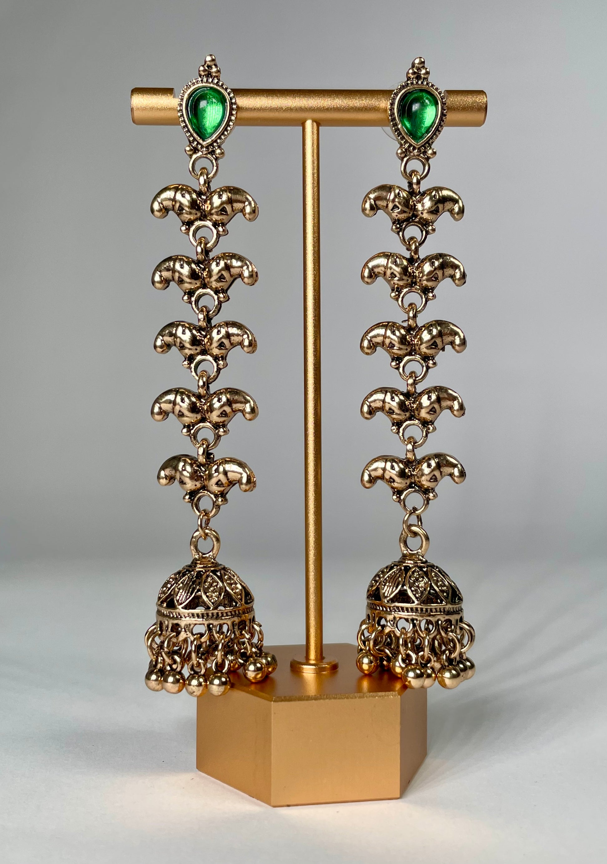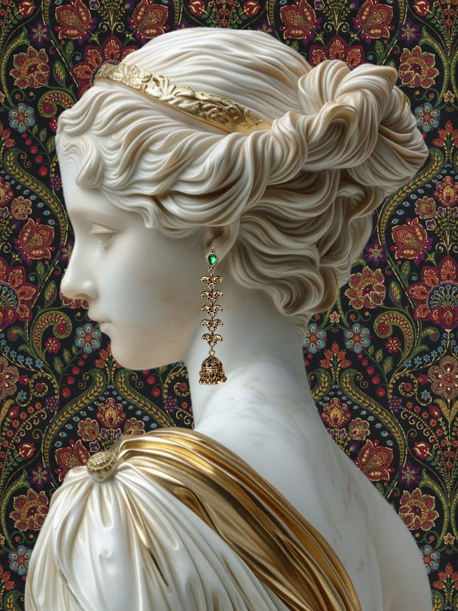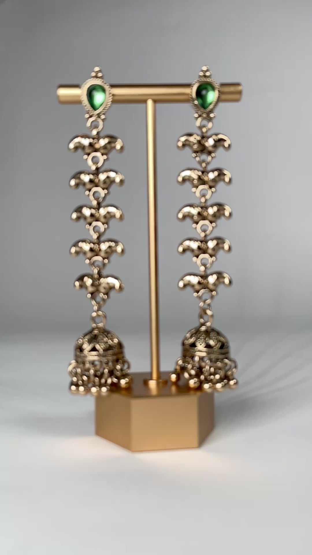 Zenvia is a Green-Stone-Layered-Gold-Jimka-Earring that radiates timeless elegance with a refreshing twist. The rich green stones cascade through layered gold detailing, creating a design that feels both regal and alive. Whether you're dressing for a celebration or adding a touch of grandeur to your day, Zenvia brings harmony, heritage, and a graceful sparkle to every moment.