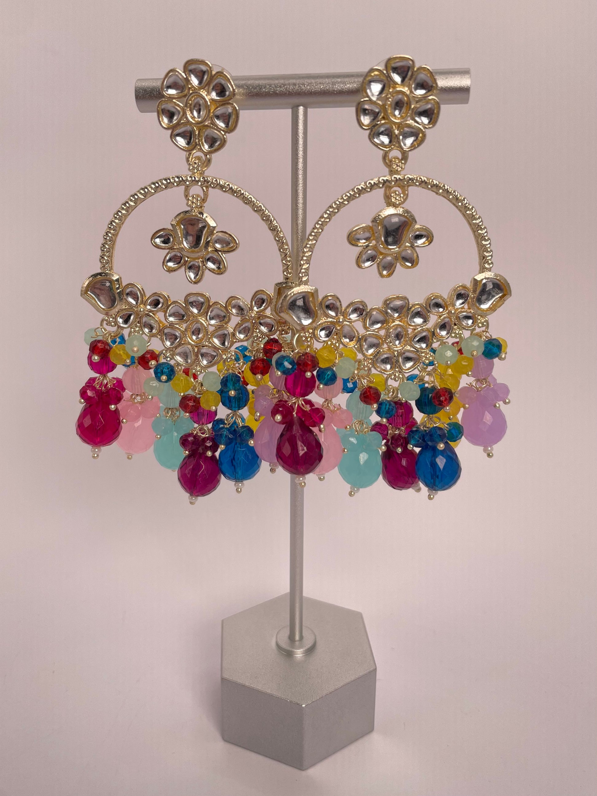 Regal and festive, the Kundan Stone Colourful Beads Earring showcases traditional kundan work highlighted with vibrant beads. A statement piece that blends heritage craftsmanship with lively elegance, perfect for cultural and special occasions.